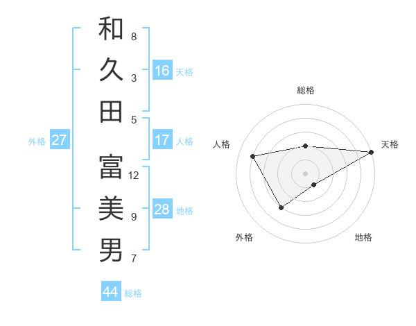 和久田 富美男さんを姓名の画数から五運を鑑定