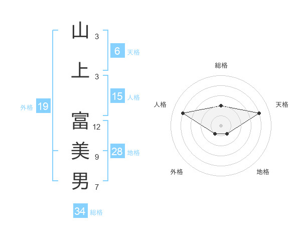 山上 富美男さんの総格は34画の2点!