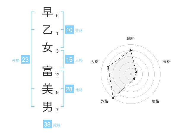 早乙女 富美男さんの総格は38画の4点!