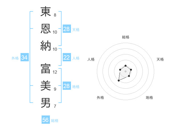 東恩納 富美男さんを姓名の画数から五運を鑑定
