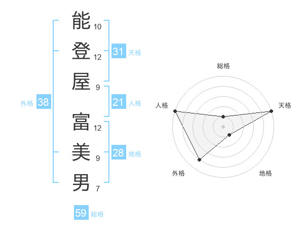 能登屋 富美男さんを姓名の画数から五運を鑑定