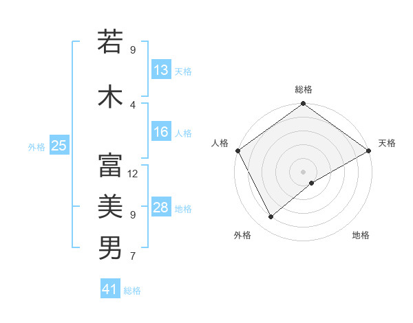 若木 富美男さんの総格は41画の5点!