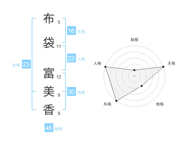 布袋 富美香さんの外格は23画の5点!