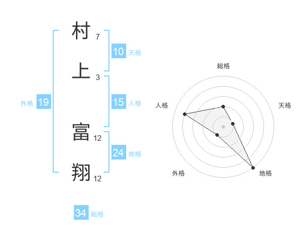 村上 富翔さんの総格は34画の2点!
