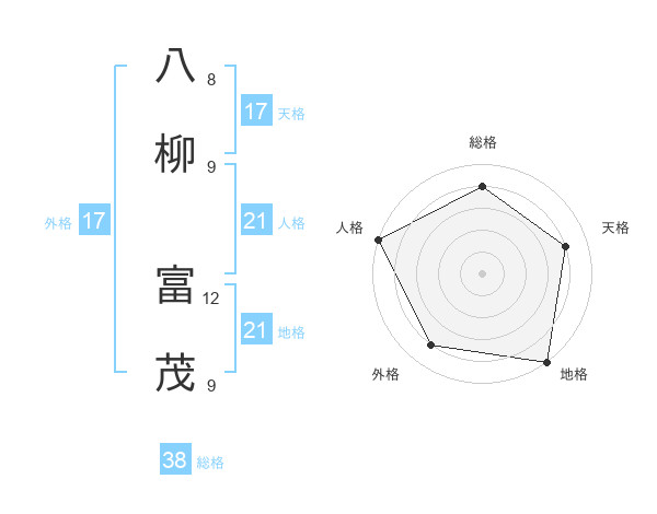 八柳 富茂さんを姓名の画数から五運を鑑定
