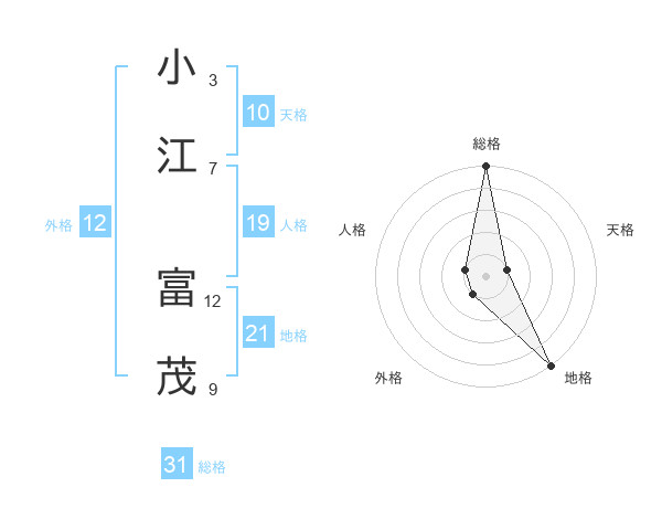 小江 富茂さんの総格は31画の5点!
