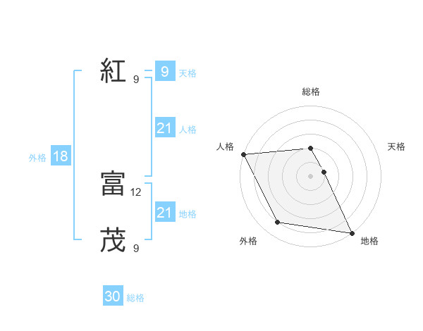 紅 富茂さんの地格は21画の5点!