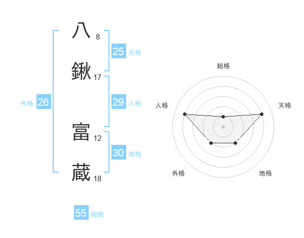 八鍬 富蔵さんの総格は55画の1点!