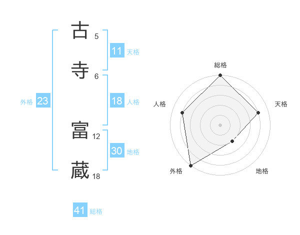 古寺 富蔵さんの総格は41画の5点!