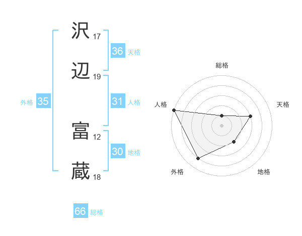 沢辺 富蔵さんの総格は66画の1点!