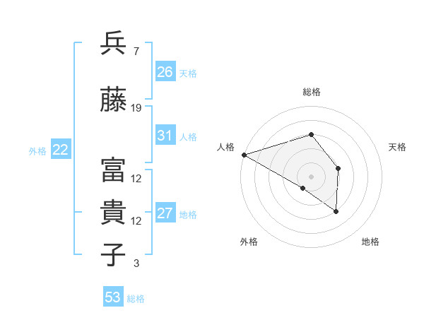 兵藤 富貴子さんを姓名の画数から五運を鑑定
