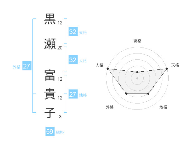 黒瀬 富貴子さんを姓名の画数から五運を鑑定