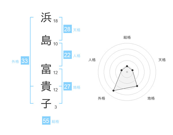 浜島 富貴子さんを姓名の画数から五運を鑑定