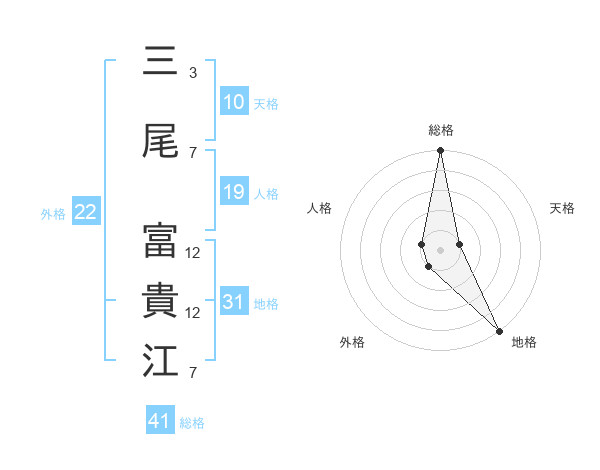 三尾 富貴江さんを姓名の画数から五運を鑑定