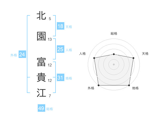 北園 富貴江さんの総格は49画の2点