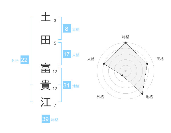 土田 富貴江さんを姓名の画数から五運を鑑定