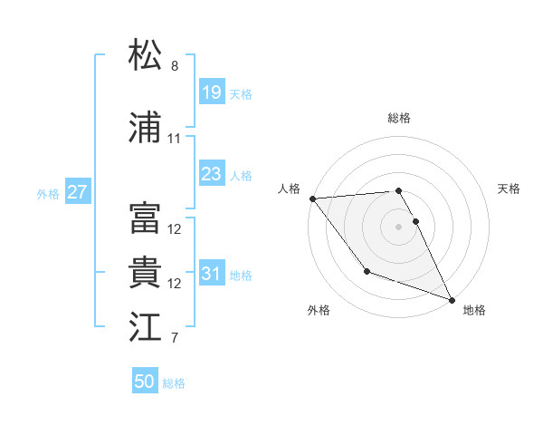 松浦 富貴江さんを姓名の画数から五運を鑑定