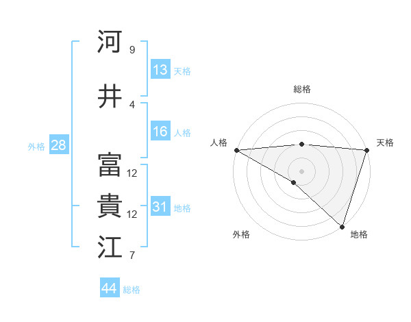 河井 富貴江さんを姓名の画数から五運を鑑定