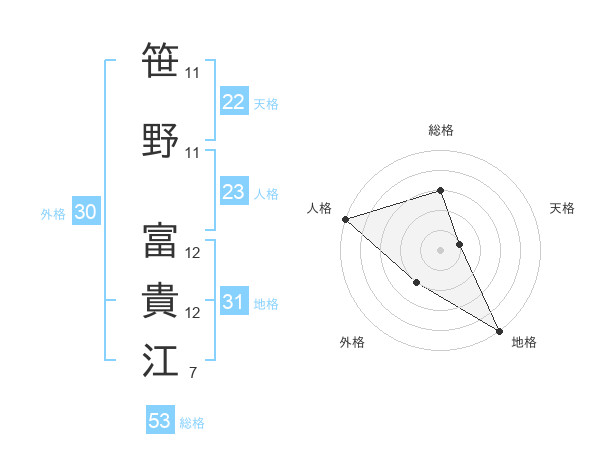 笹野 富貴江さんの総格は53画の3点!