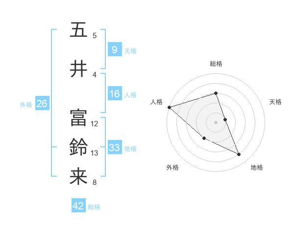五井 富鈴来さんを姓名の画数から五運を鑑定