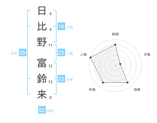 日比野 富鈴来さんの総格は52画の4点!