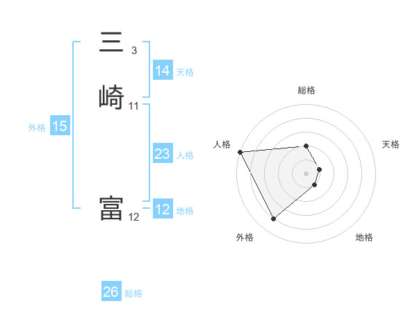 三崎 富さんの総格は26画の2点!