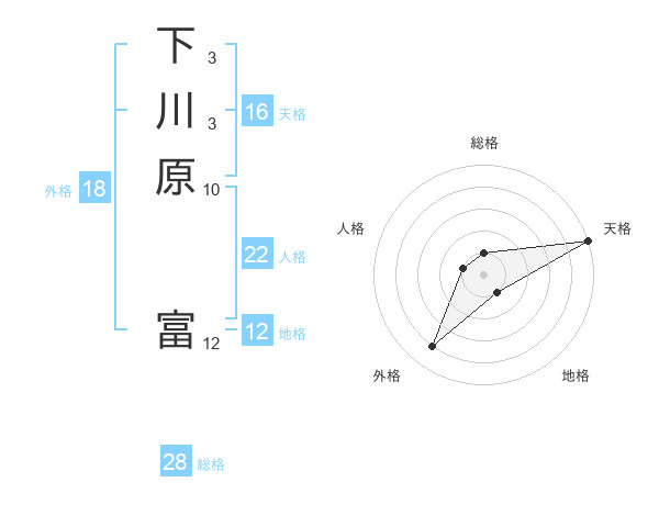 下川原 富さんの総格は28画の1点!