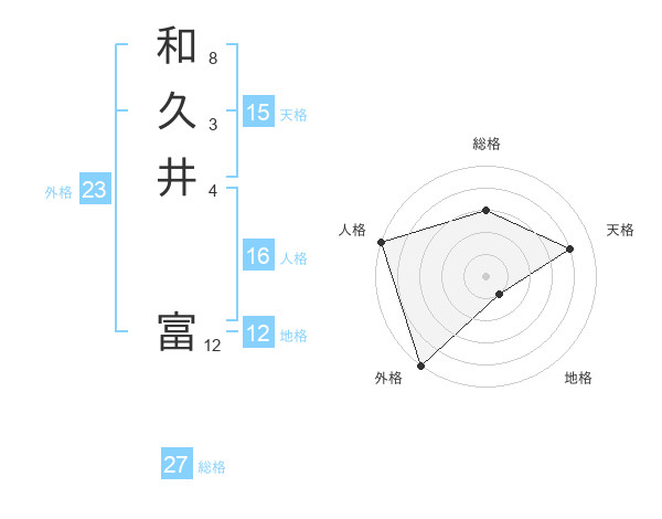 和久井 富さんの総格は27画の3点!