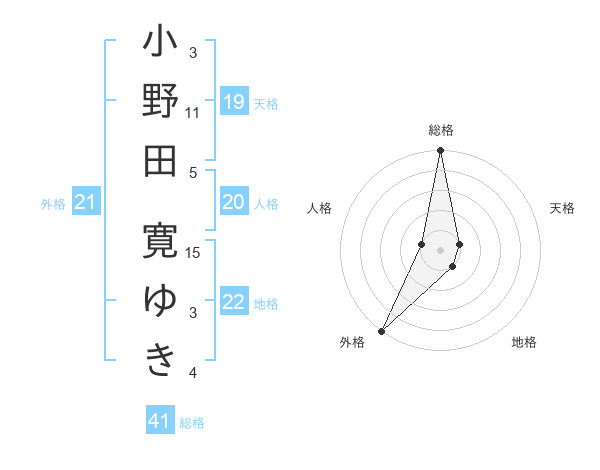 小野田 寛ゆきさんを姓名の画数から五運を鑑定