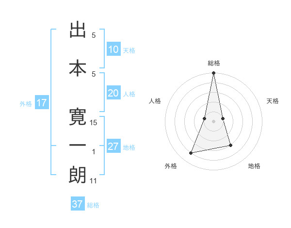 出本 寛一朗さんを姓名の画数から五運を鑑定