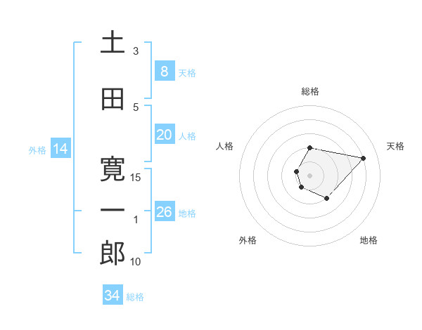 土田 寛一郎さんを姓名の画数から五運を鑑定