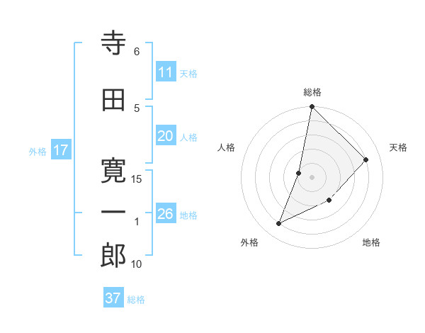 寺田 寛一郎さんを姓名の画数から五運を鑑定