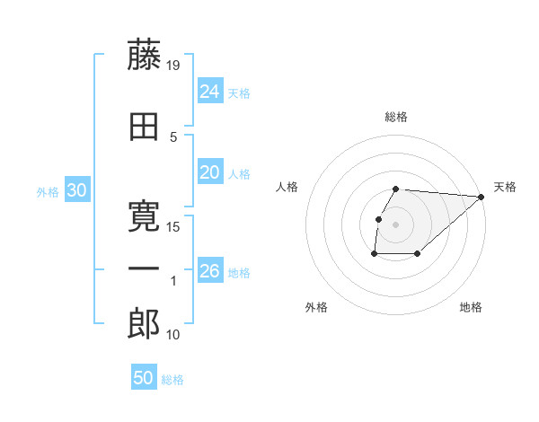 藤田 寛一郎さんの天格は24画の5点!
