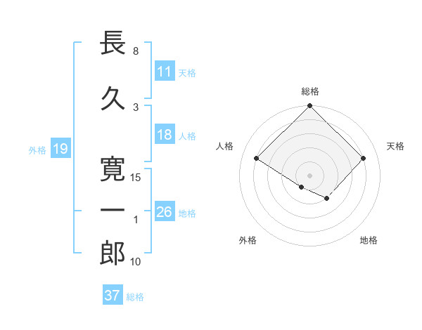 長久 寛一郎さんを姓名の画数から五運を鑑定