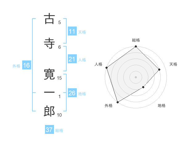 古寺 寛一郎さんの総格は37画の5点!
