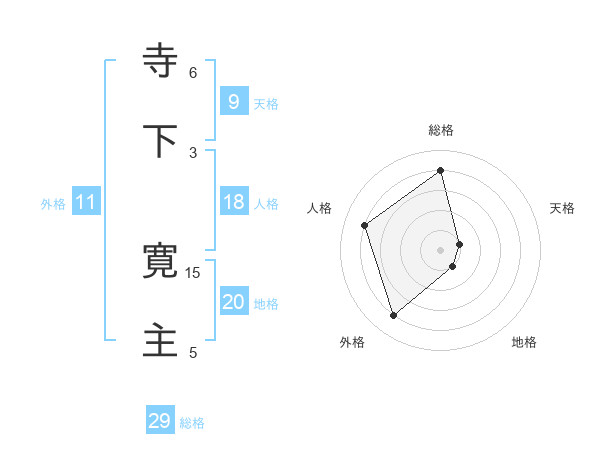 寺下 寛主さんを姓名の画数から五運を鑑定