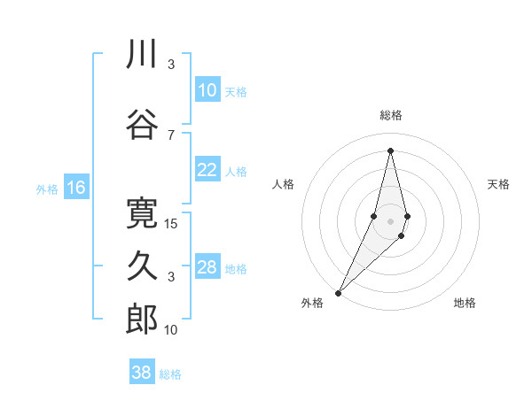 川谷 寛久郎さんの総格は38画の4点!