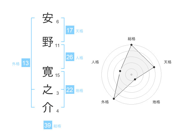 安野 寛之介さんを姓名の画数から五運を鑑定