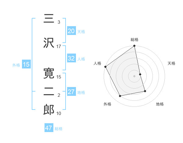三沢 寛二郎さんを姓名の画数から五運を鑑定
