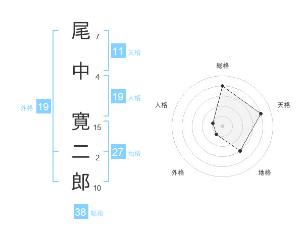 尾中 寛二郎さんを姓名の画数から五運を鑑定