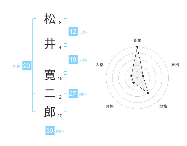 松井 寛二郎さんを姓名の画数から五運を鑑定