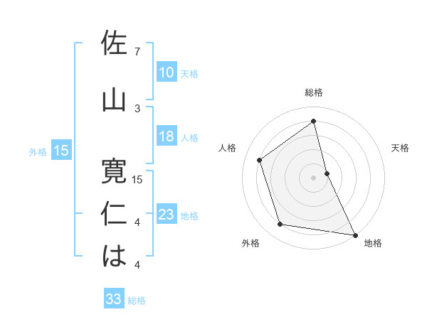 佐山 寛仁はさんの地格は23画の5点!