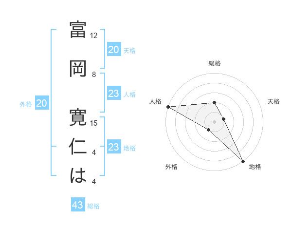 富岡 寛仁はさんを姓名の画数から五運を鑑定