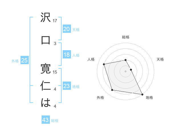沢口 寛仁はさんを姓名の画数から五運を鑑定