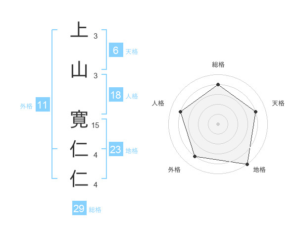 上山 寛仁仁さんの総格は29画の4点!
