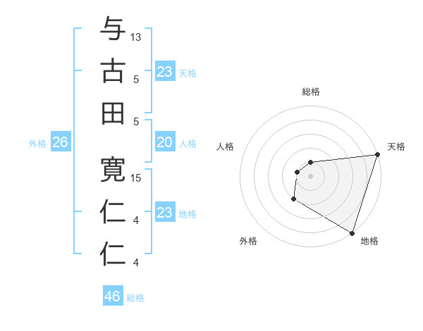 与古田 寛仁仁さんを姓名の画数から五運を鑑定
