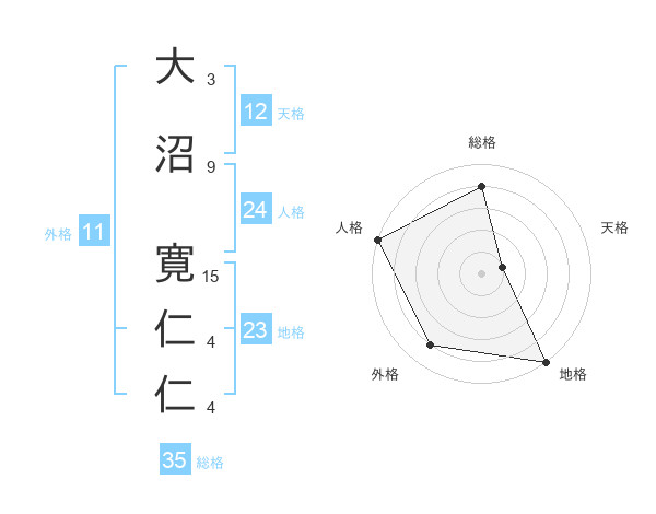 大沼 寛仁仁さんを姓名の画数から五運を鑑定