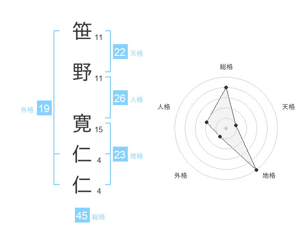 笹野 寛仁仁さんを姓名の画数から五運を鑑定