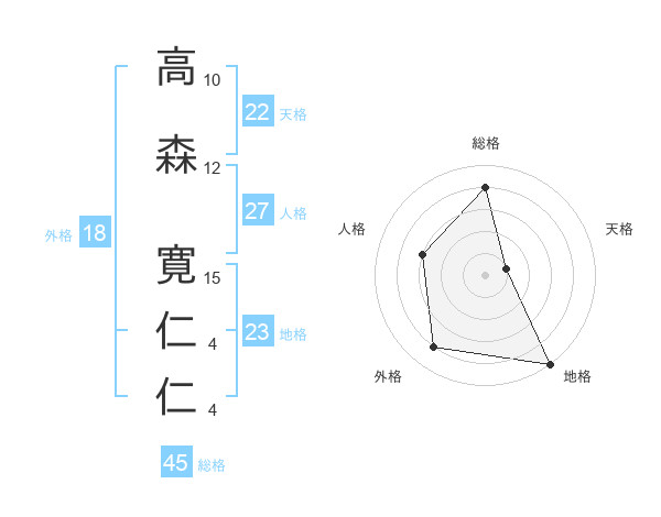高森 寛仁仁さんの総格は45画の4点!