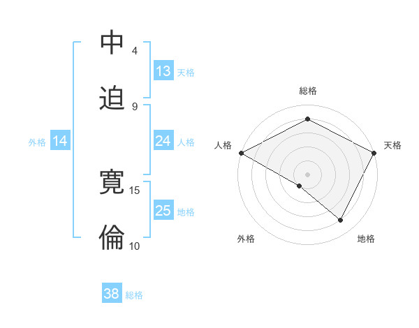 中迫 寛倫さんの総格は38画の4点!